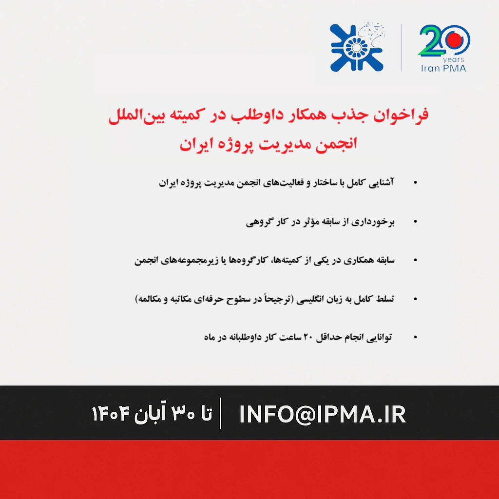 فراخوان جذب همکار داوطلب در کمیته بینالملل انجمن مدیریت پروژه ایران